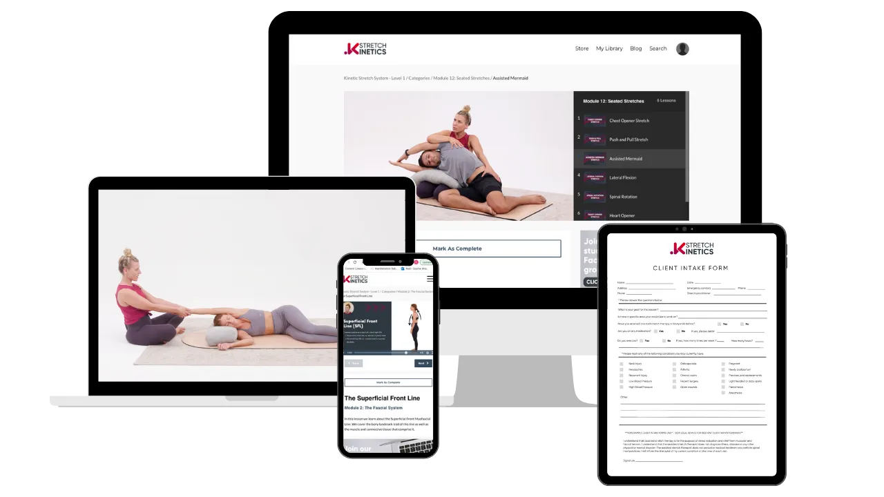 50+ instructional stretch videos you can use prescribe your clients stretches, post session.